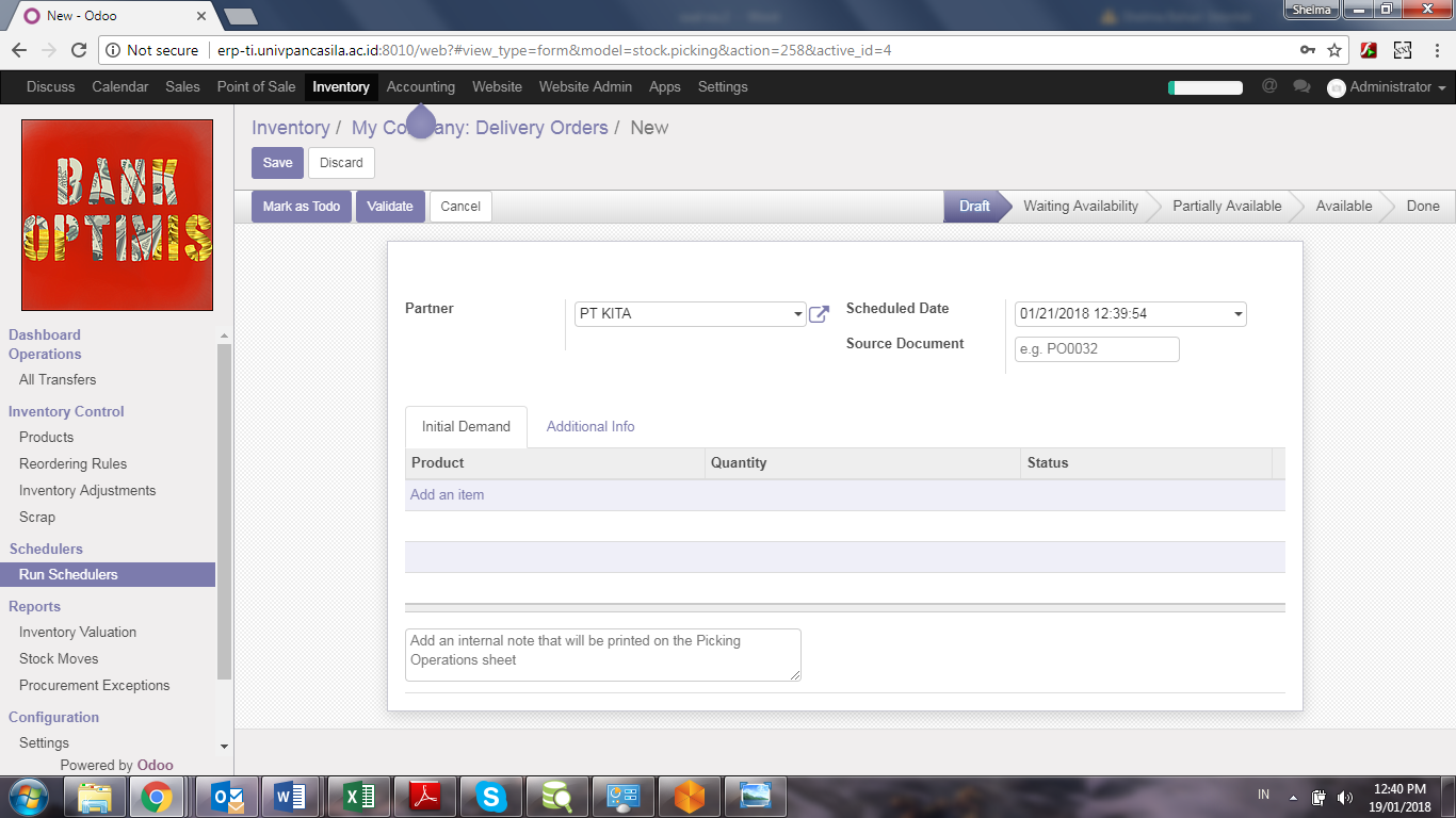 Cara Input Data Odoo Modul Warehouse (delivery order)